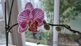 Orchids starting to flower. The one in the background has a much larger number of flowers, just starting to open now