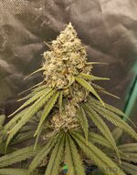 Super chunky Hope the weather gods wake up , looks like 3 days of sunshine .8 weeks flower tomorrow. Finally got some winter coming on and hoping for some nice dry days. If it's looking a bit off I'll go to 9 weeks, but if it's looking good I'll try for 10. Starting to milk up and recede stigma. 13 weeks in on tap water. Started to show signs of deficiency a few days ago but at this stage I'll just ride it out.